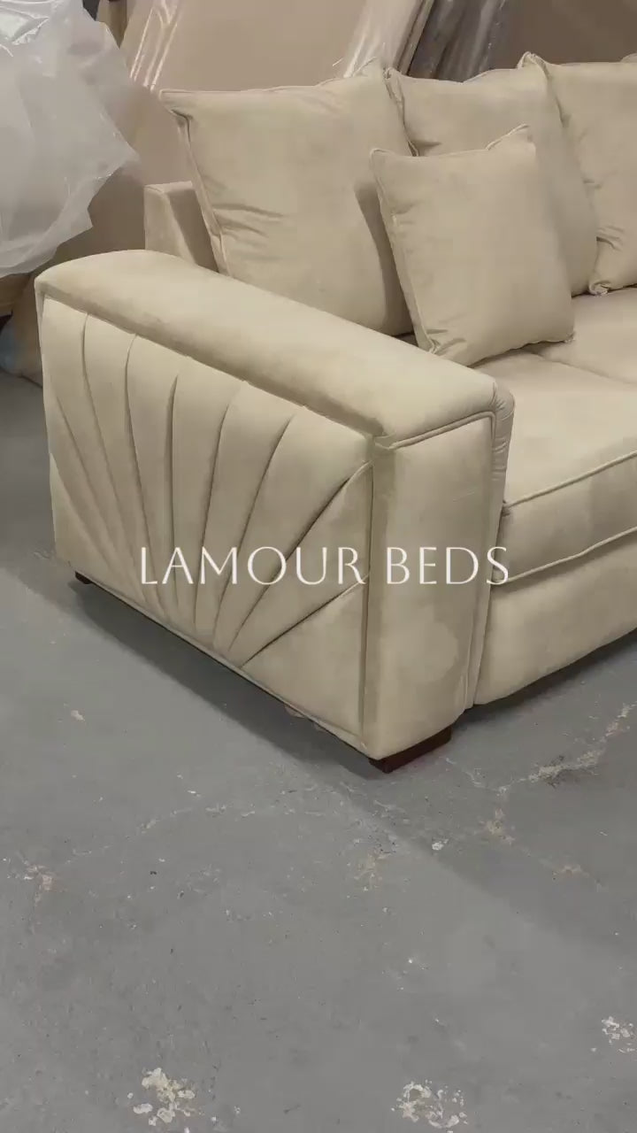 Introducing the Sunrise Sofa L shape corner - a luxurious piece of furniture that combines style and functionality. This elegant sofa is designed to maximize space and provide maximum comfort, making it a perfect addition to any modern home. Elevate your living space with the Sunrise Sofa L shape corner.